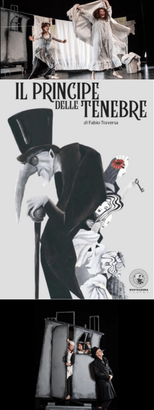 Contact me to enquire about booking The Prince of Darkness, by Ruotalibera Teatro for touring between Winter 2023 and Spring/Summer 2024. Inspired by Italian folktale Naso d’Argento (Silver Nose) and the mysterious atmospheres of F.W. Murnau’s Nosferatu and R. Wiene’s Cabinet of Doctor Caligari the play brings together German Expressionism and the playfulness of Commedia dell’Arte – to a story of female solidarity and empowerment.